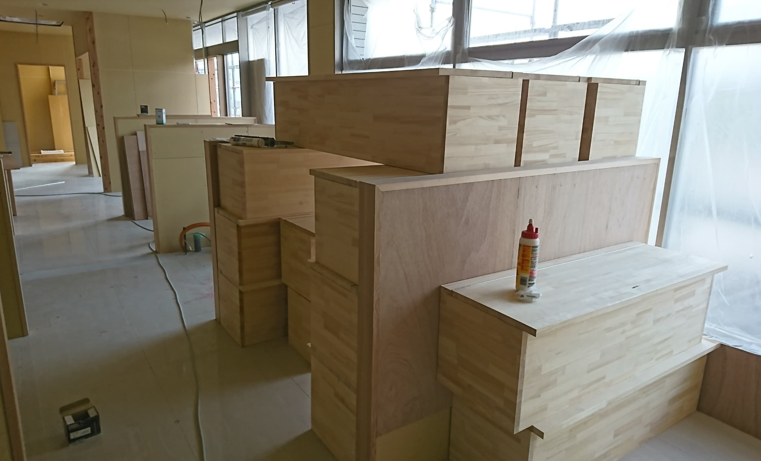 塗装前の生木の状態です。これから、色付けをしてクリアー塗装で仕上げていきます。