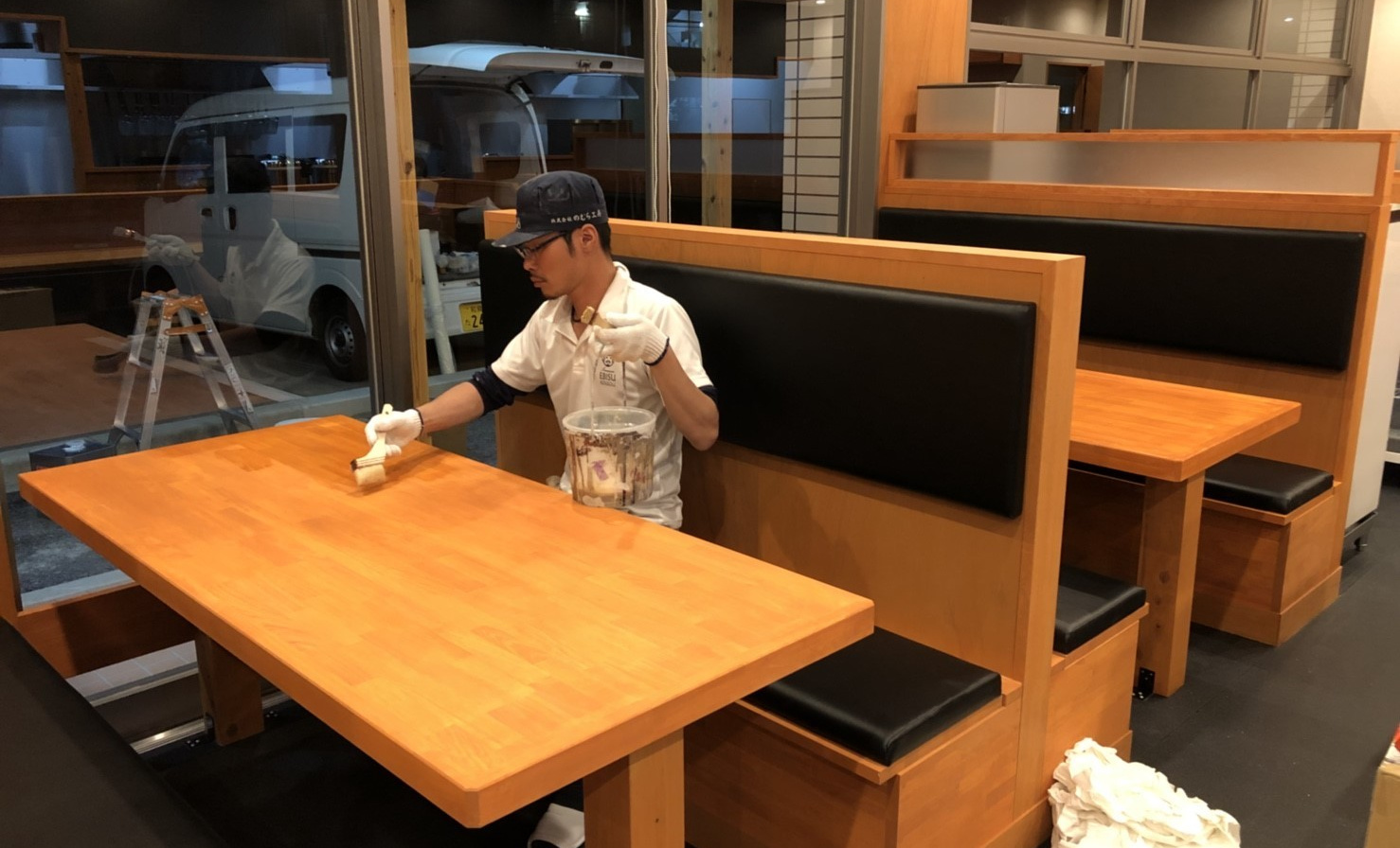 塗装を行ったあとにウエスにてふき取ります。それにより木目を活かすことができます。