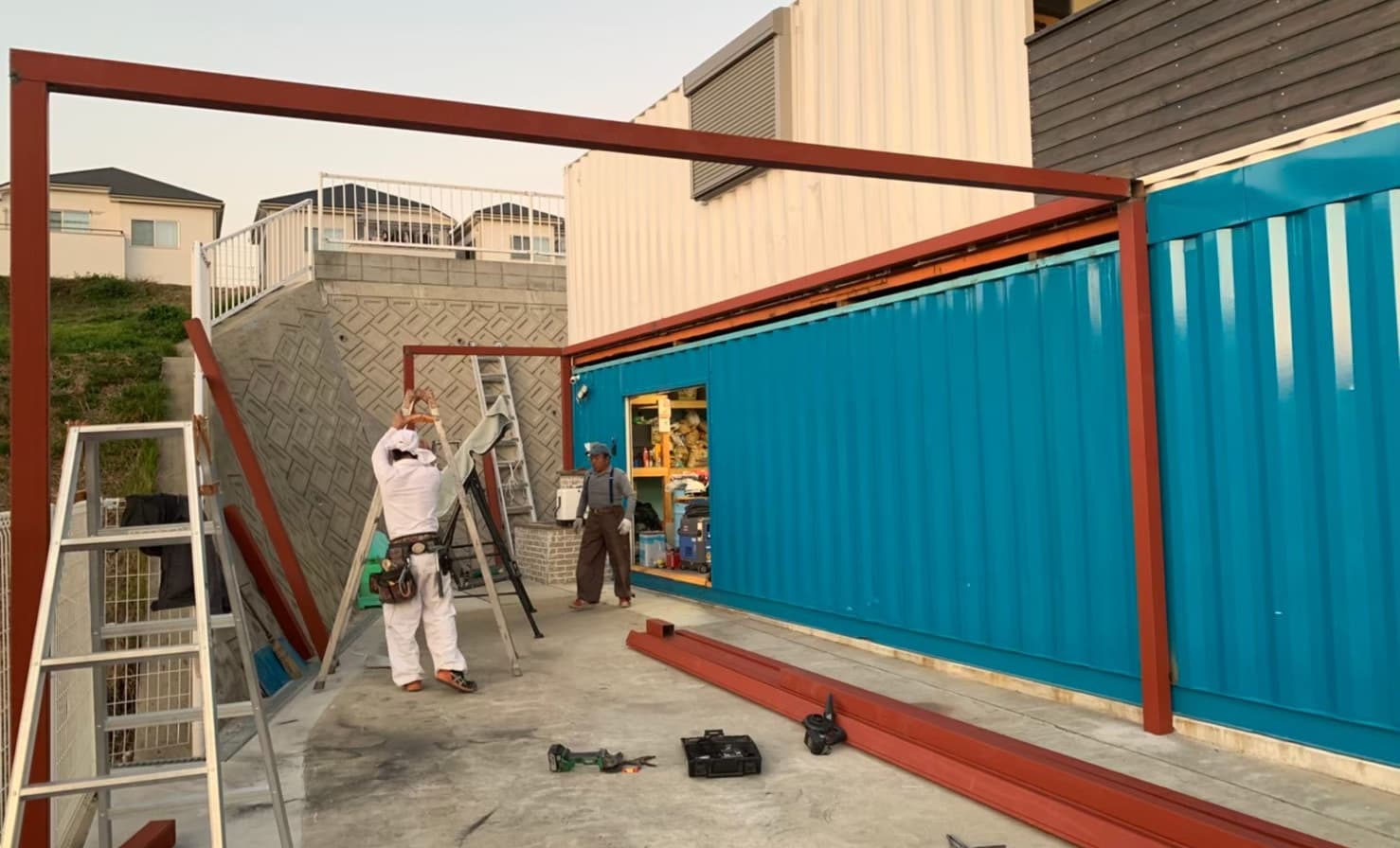 まずは、鉄骨を溶接していき、テラスの骨組みを作ります。
