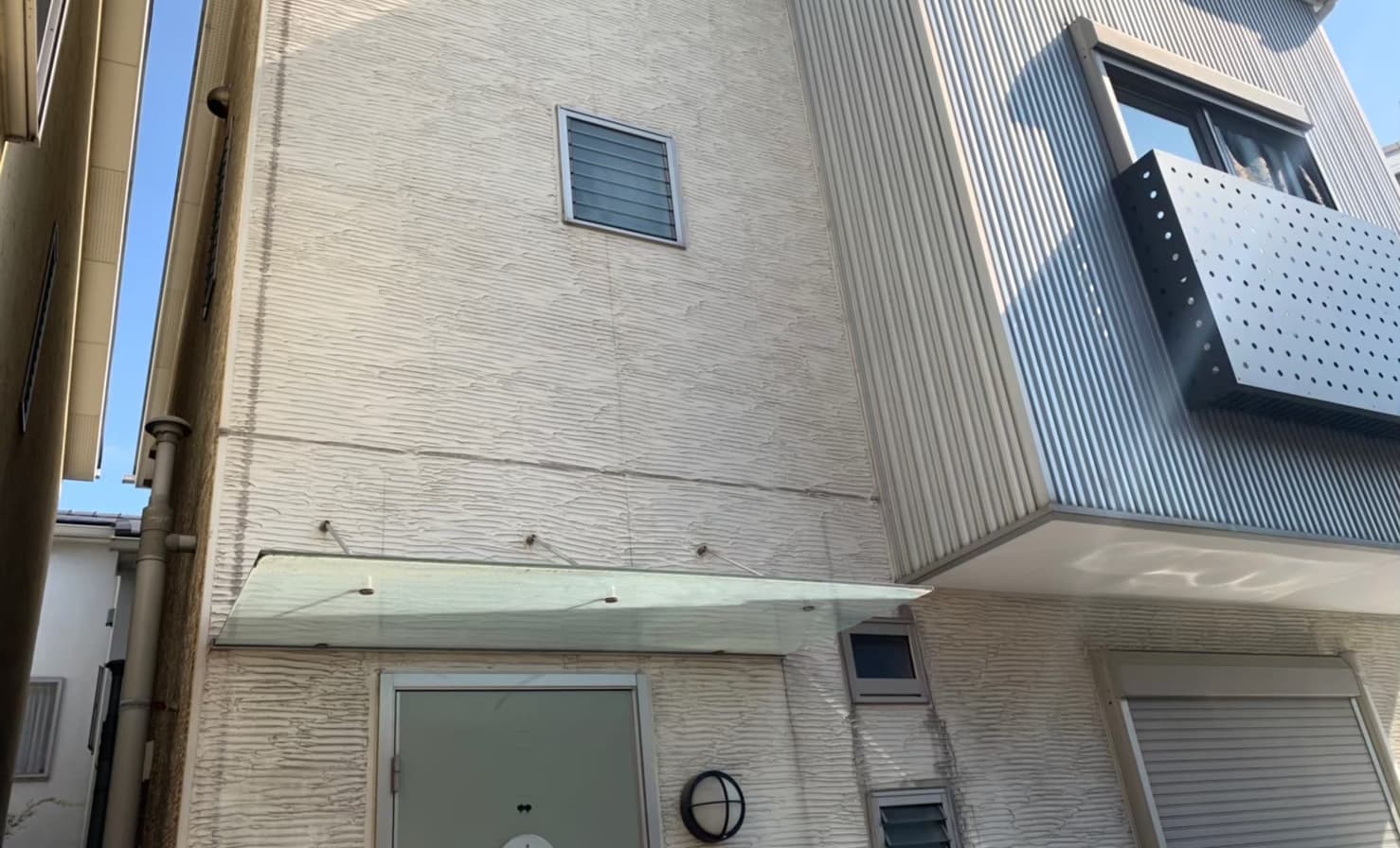 外壁はイメージ変更のため、元々白系の壁を、黒系で塗装します。