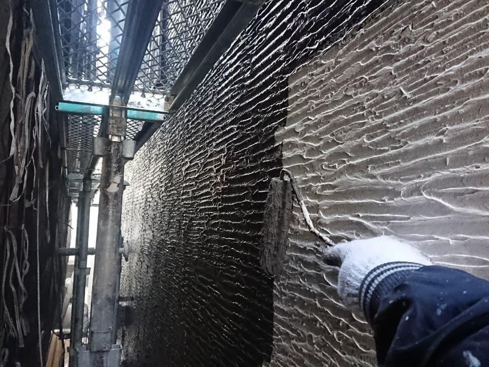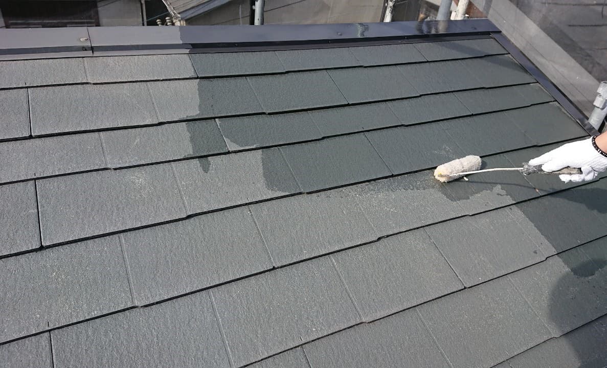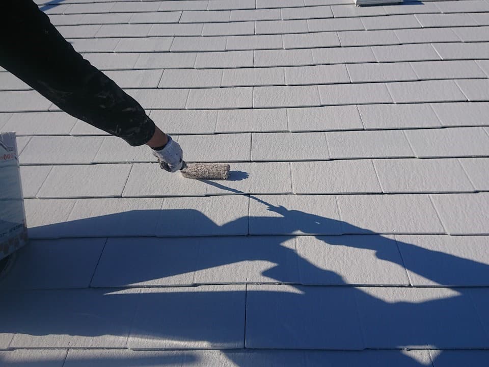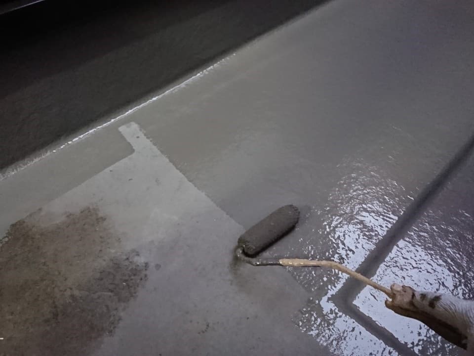 プライマー後、上塗り1回施工を終え、乾燥期間を経て上塗り2回目の塗装です。