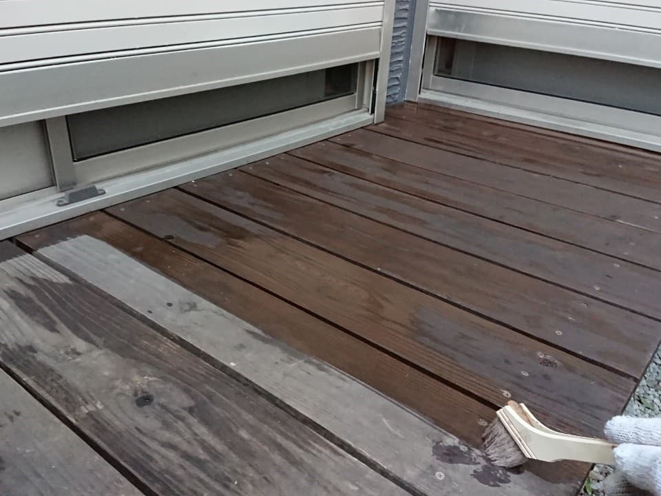 木部用、キシラデコールにて木材の防腐処理、保護の為塗装を行いました。