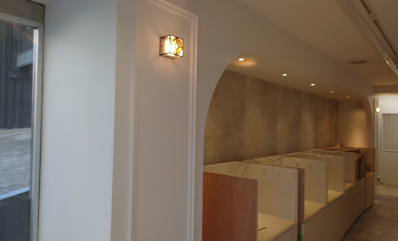間接照明の色合いとデザインも良くて壁と相まって、よい雰囲気が出てますね。