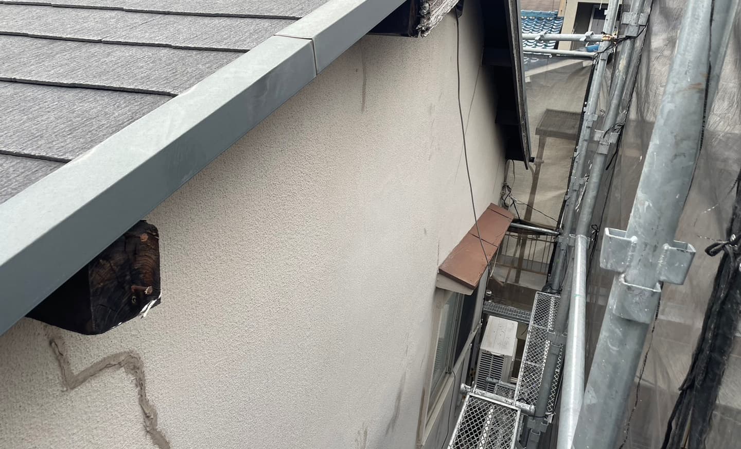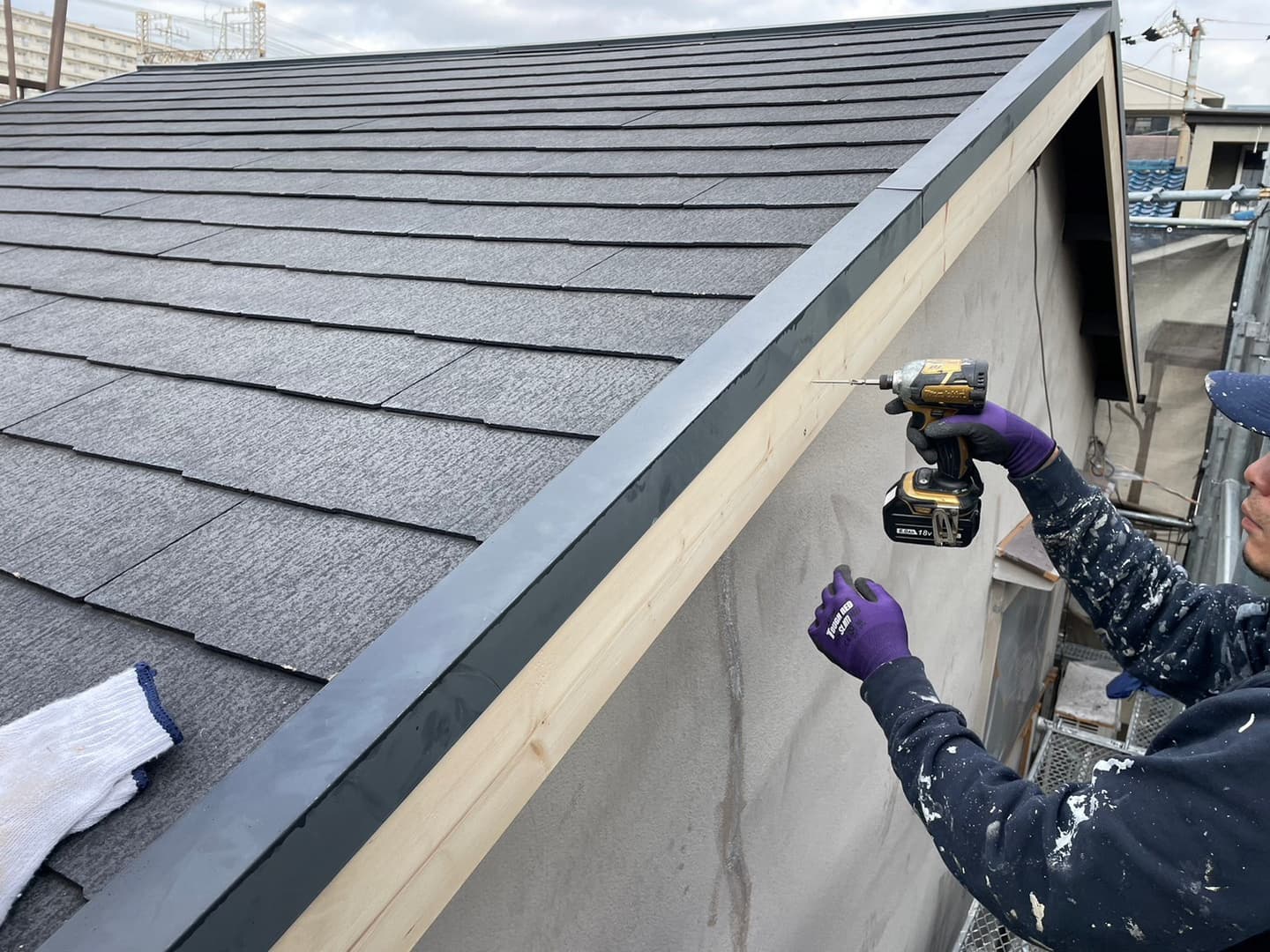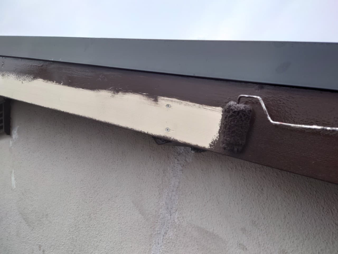 補修作業が終わりましたら破風板と軒板を塗っていきます。