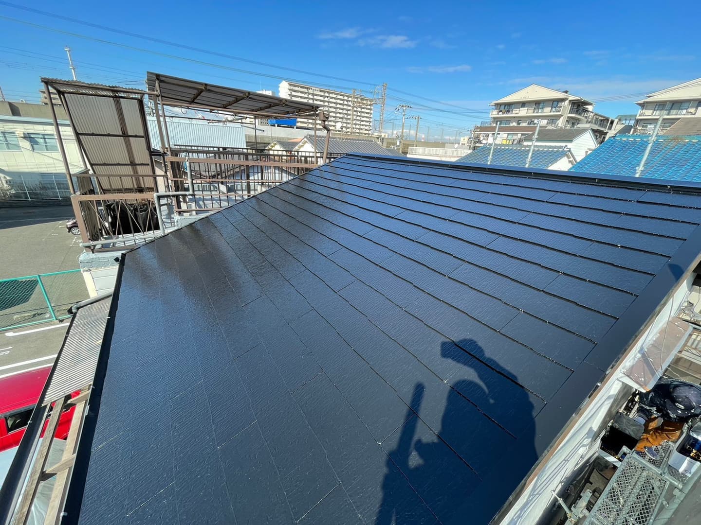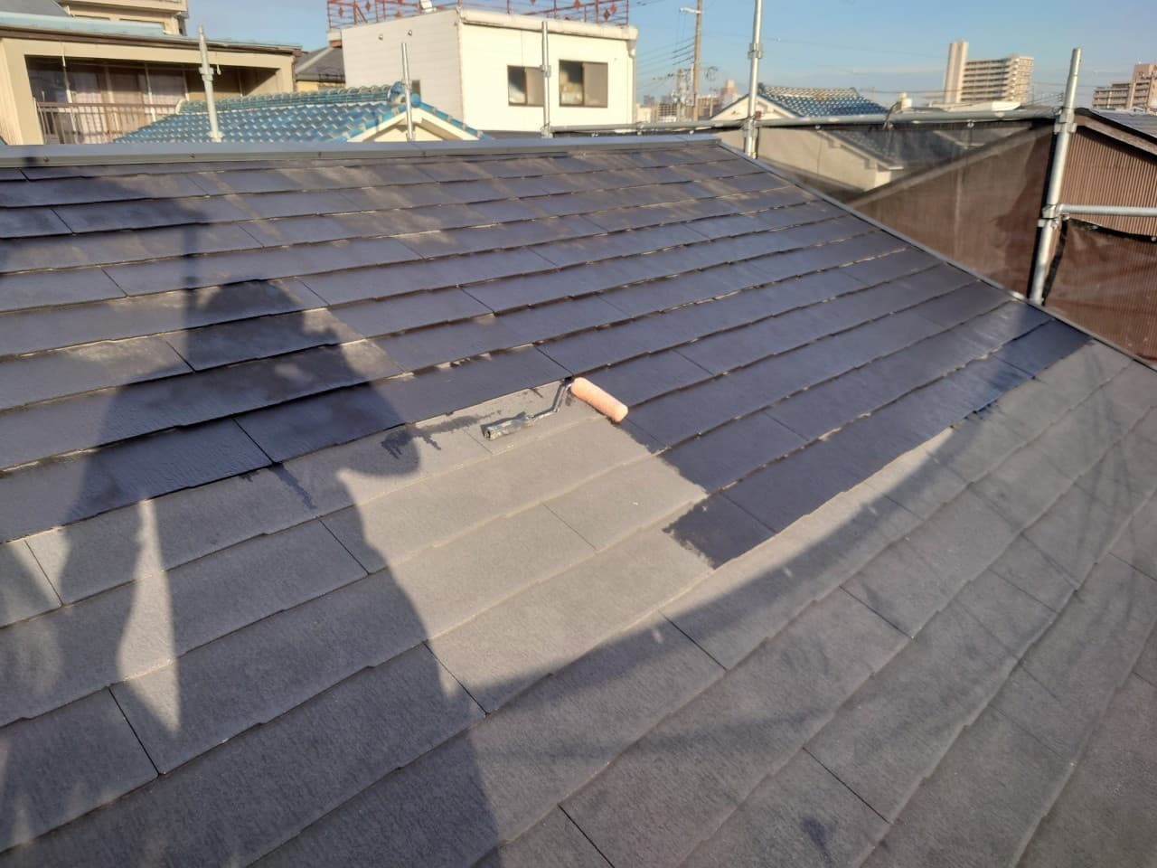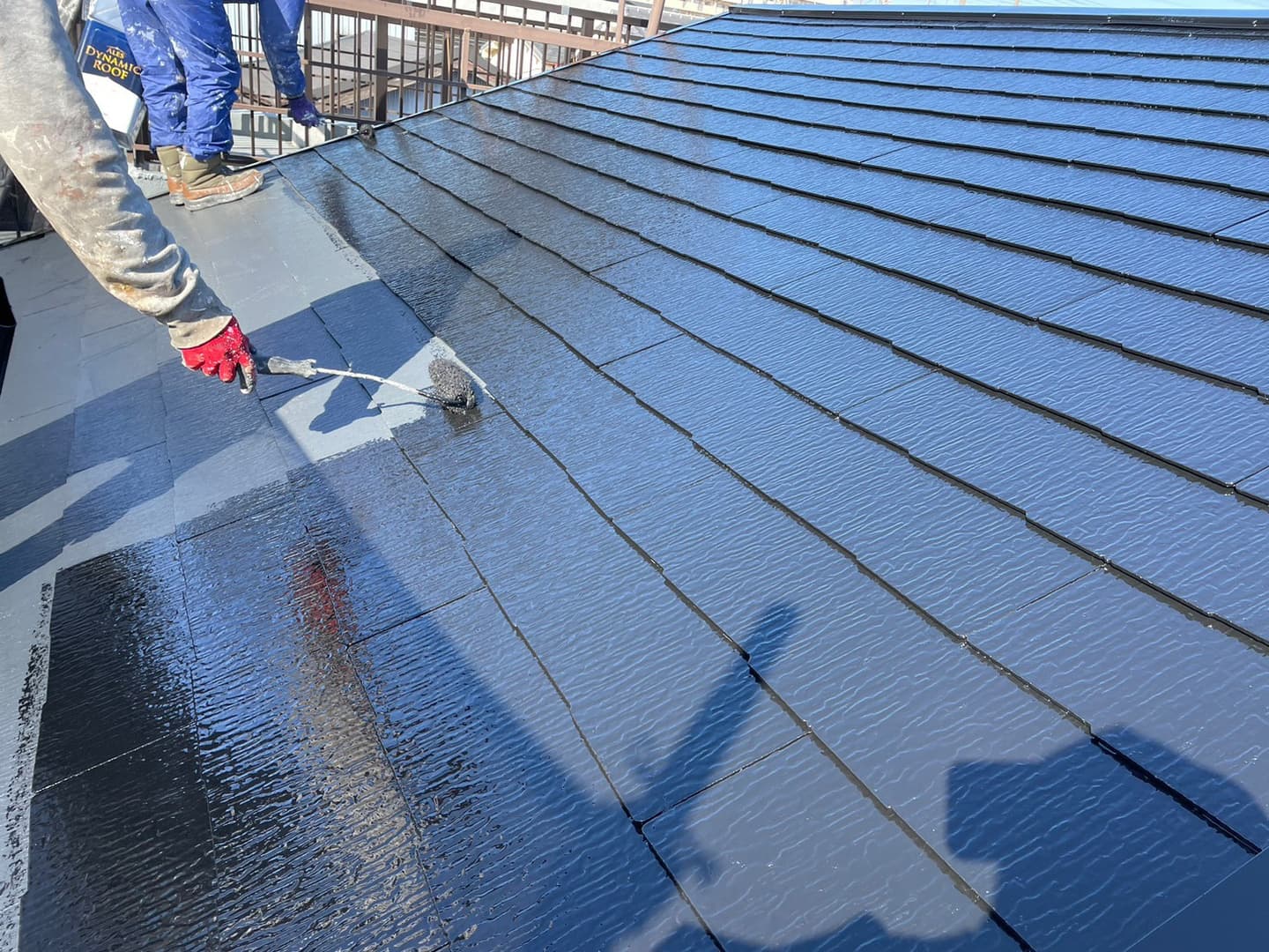 補修作業が終わりましたら破風板と軒板を塗っていきます。