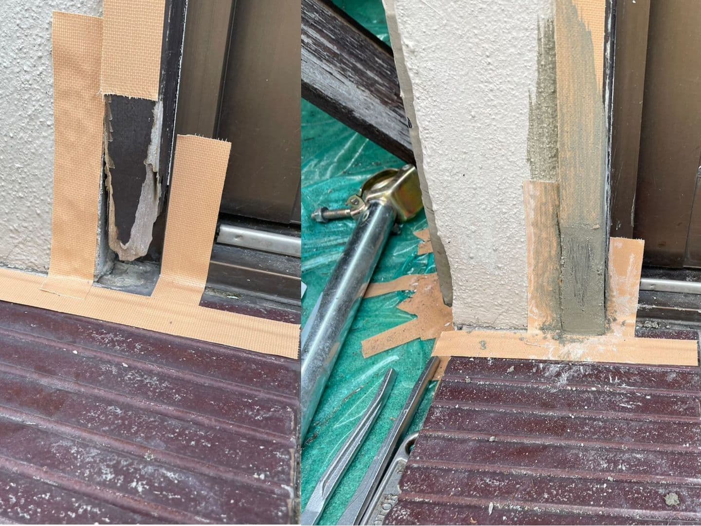 壁に入ったヒビ割れもコーキング材を使って埋めて補修します。