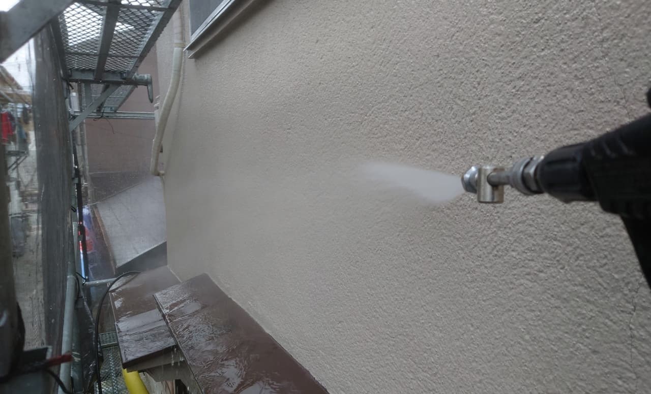 先ずは洗浄機を使って屋根、外壁の苔や埃と言った汚れを落としていきます。
