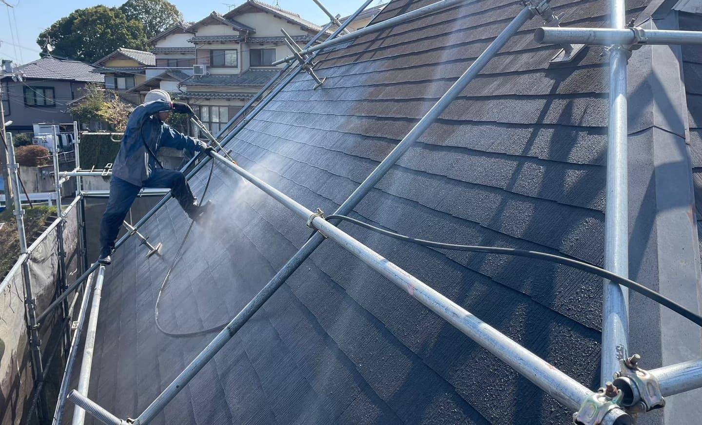 洗浄作業です。屋根、壁、土間等を高圧洗浄で流していきます。