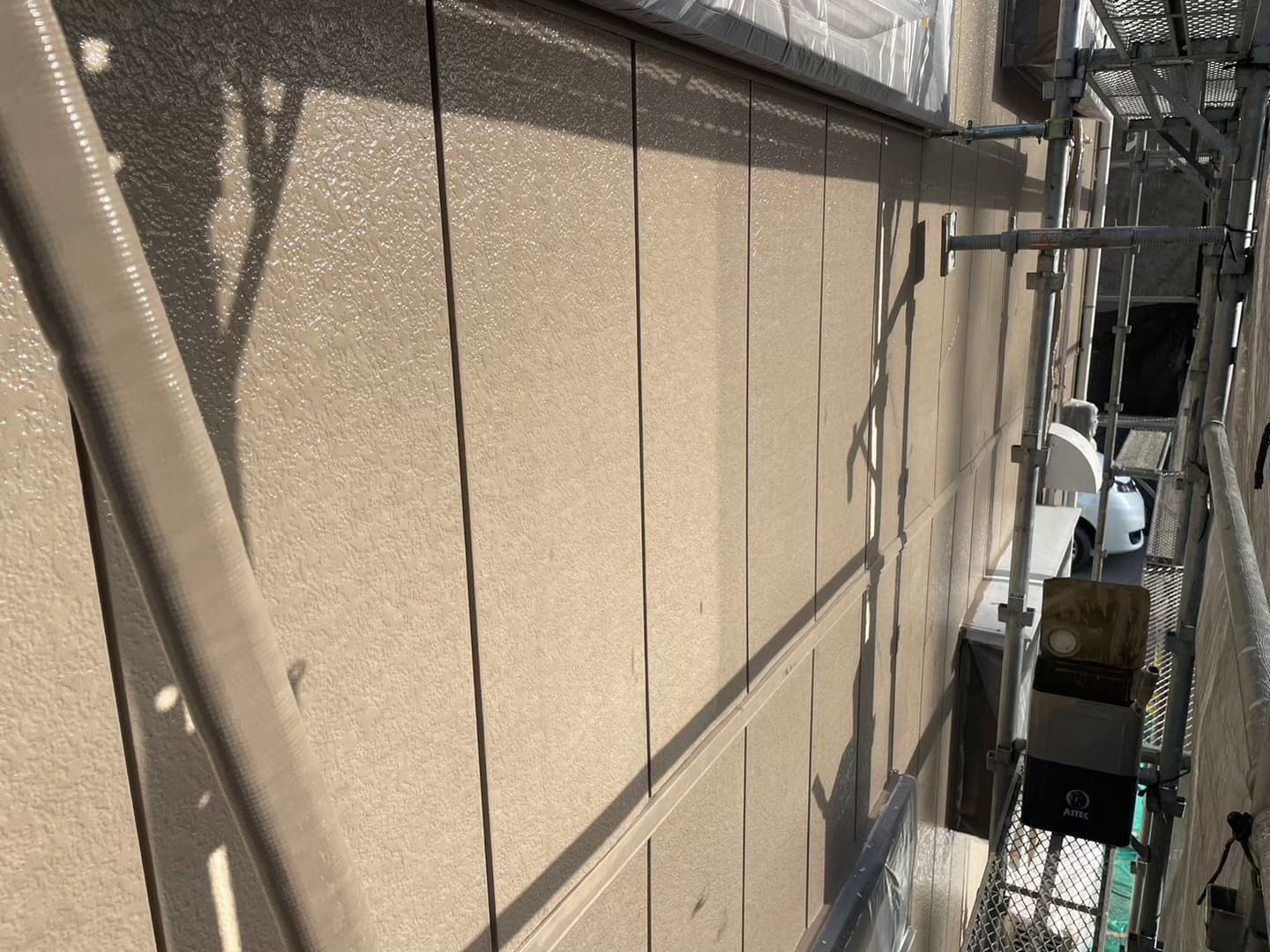 薄い茶色を主体に屋根や樋、雨戸等を濃い茶色にする事で全体をまとめつつもメリハリの付いたシュッとした感じに仕上がりましたね(^^)