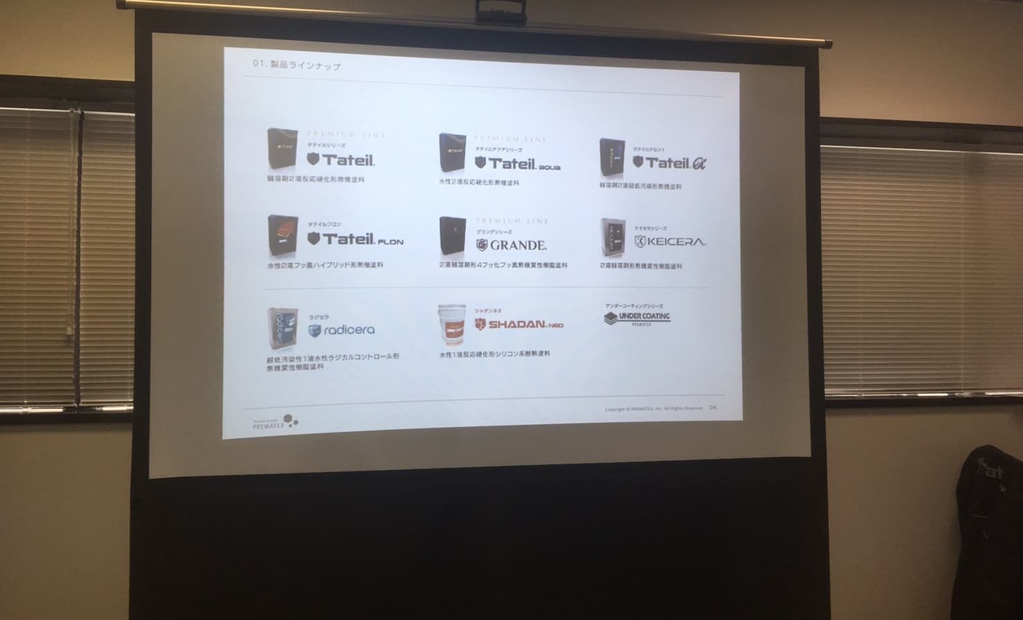 高機能建築用特殊塗料メーカーとして評判のある、プレマテックス株式会社様の行う無機塗料講習会に参加してきました。
