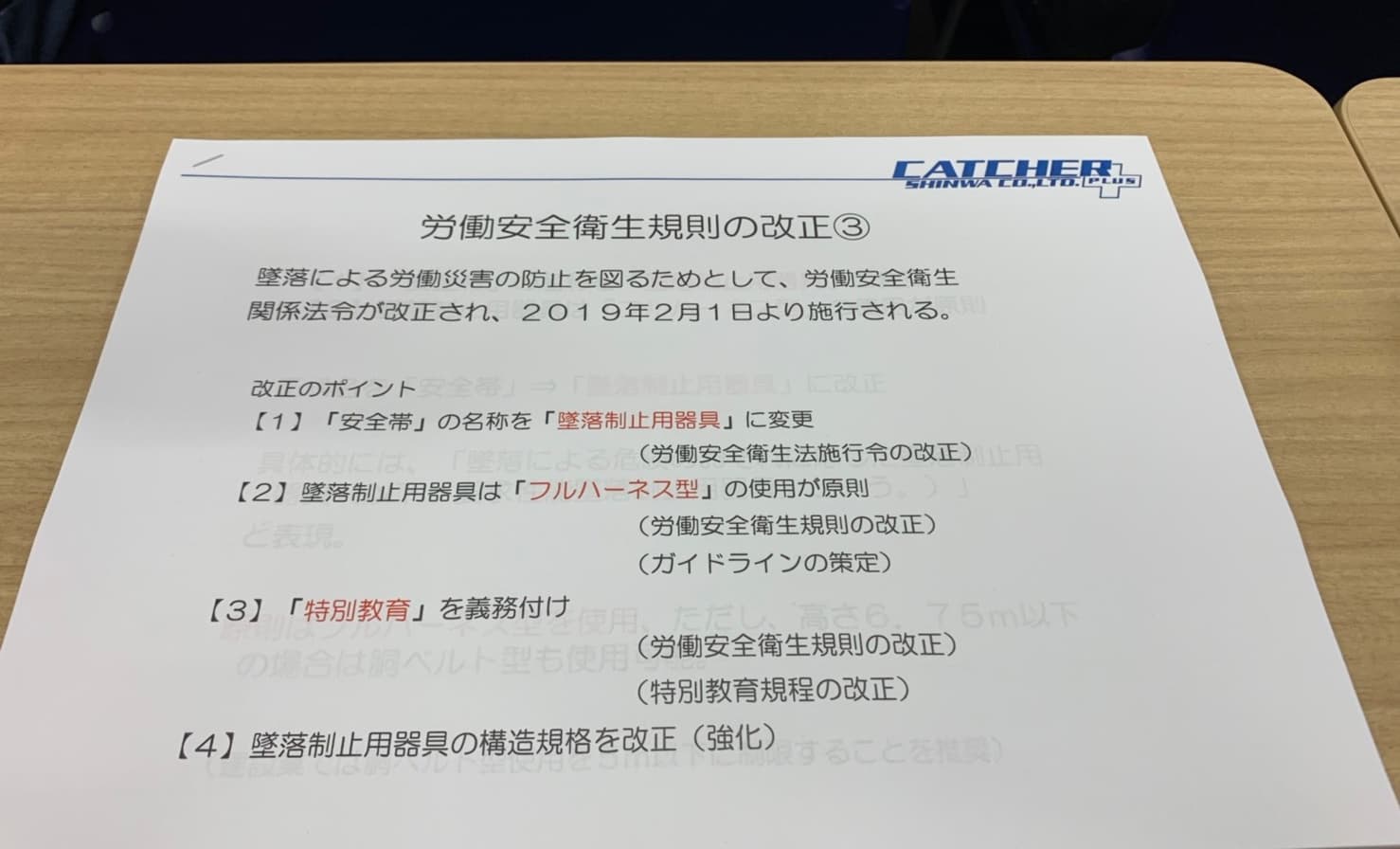 労働安全衛生規則の改正により2019年2月1日より施行された、フルハーネス型墜落防止用器具の特別教育の講習会に参加してきました。