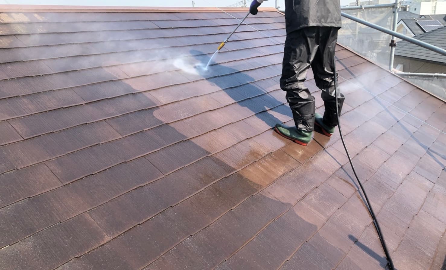 洗浄後、下塗りシーラー塗装を経て上塗り2回塗りの3工程で進めます。
