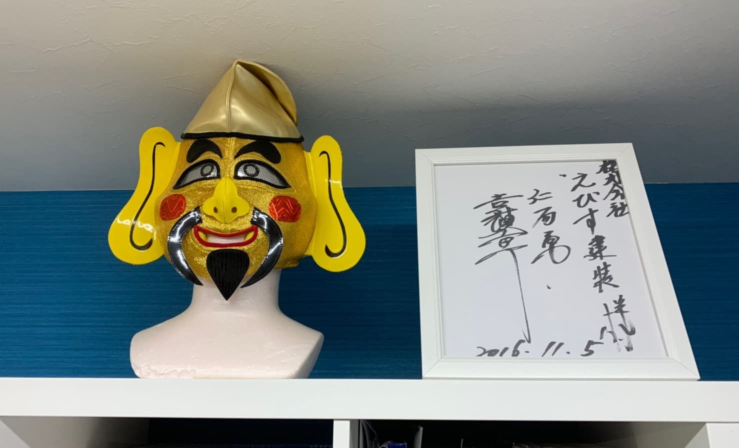 以前にブログでも紹介いたしました、遊牧人さん作のえびす建装看板を玄関に設置、しました!!