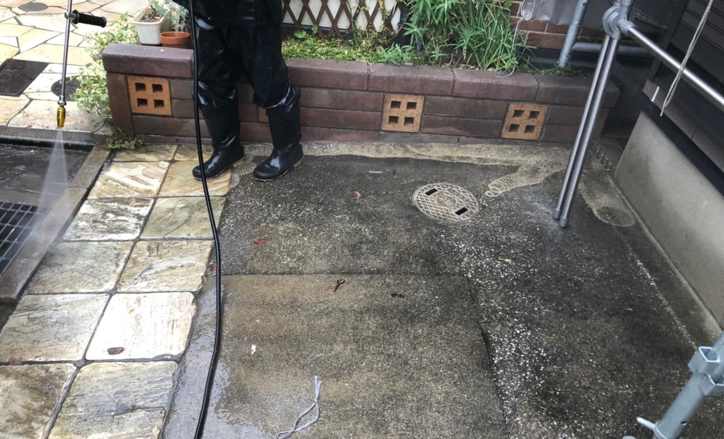 えびす建装ではできる限り洗える場所は高圧にて洗浄をかけます。