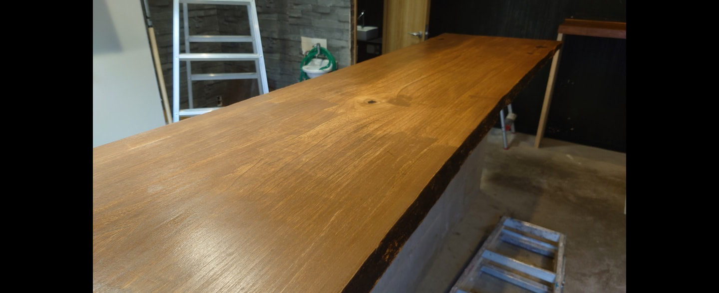 染色が終わりますと、次に肌触りを良くする為にサンディング材を塗って木材の目を詰めます。