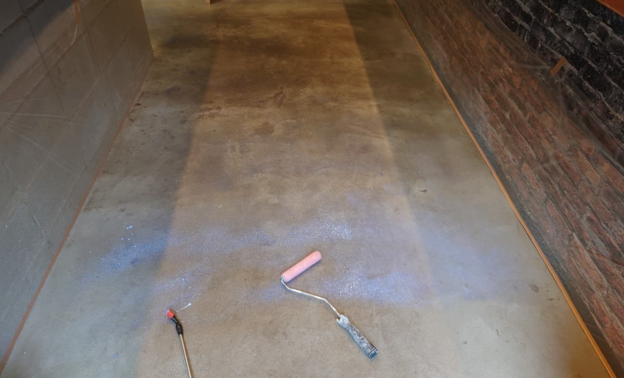 土間の方も、防塵材をベース材と仕上げ材を塗っていきます。