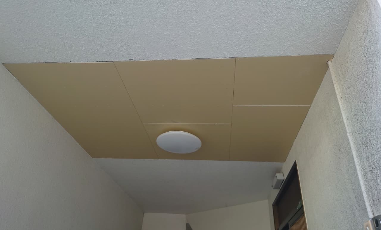 天井のボードを貼り替えたので、柄を復旧しつつ塗装していきます。