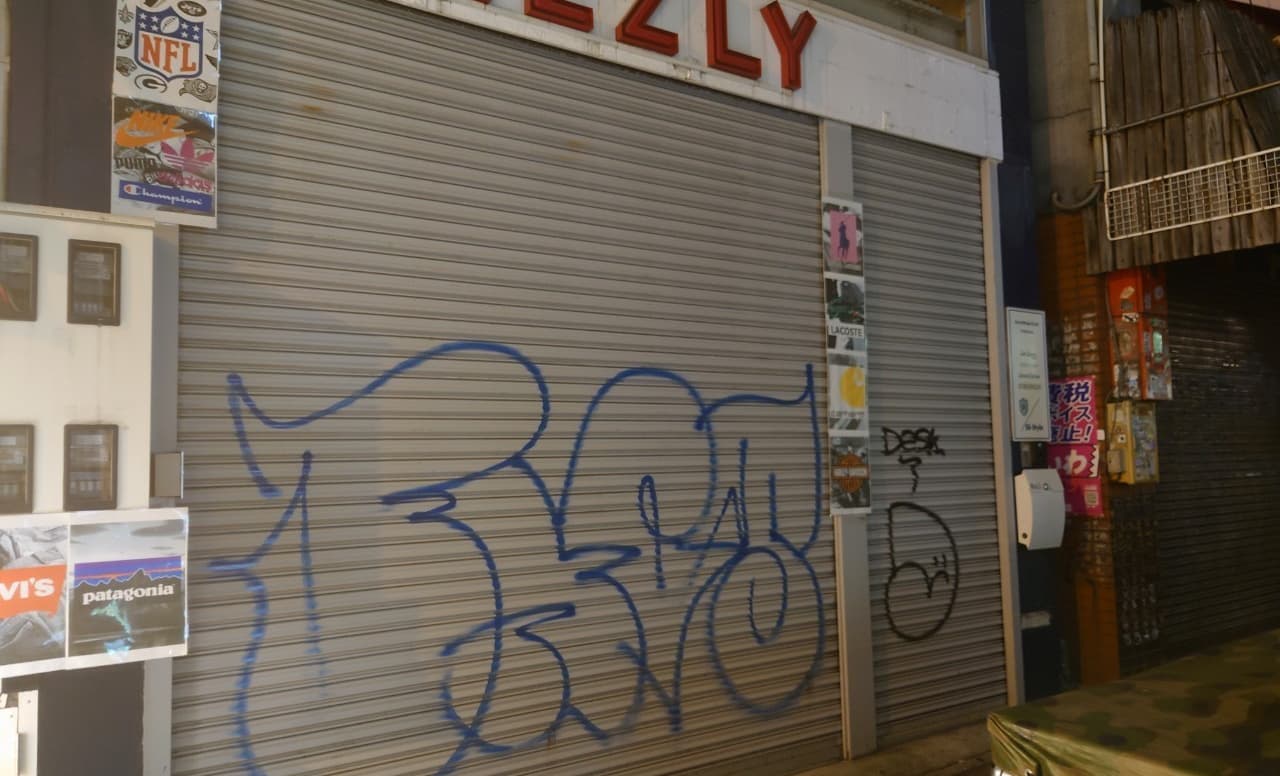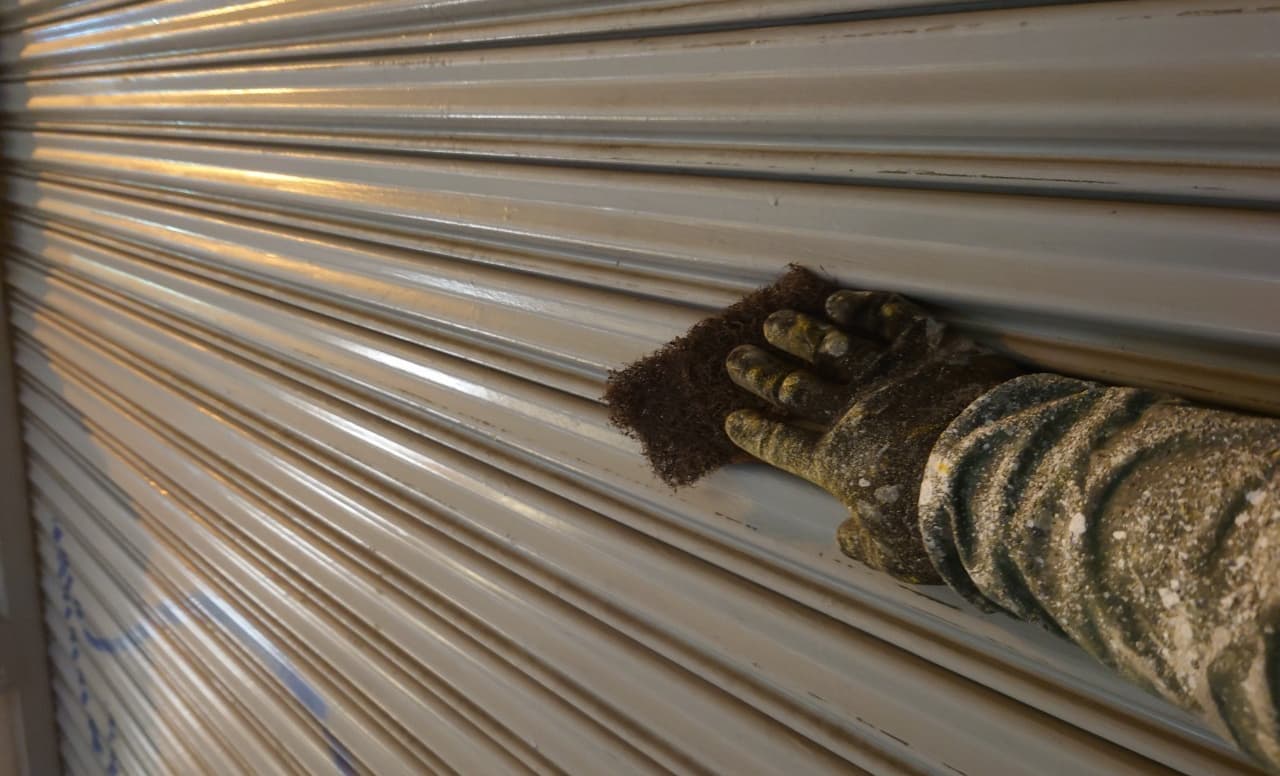 店舗様からのシャッターの落書きを消したいとのご依頼です。