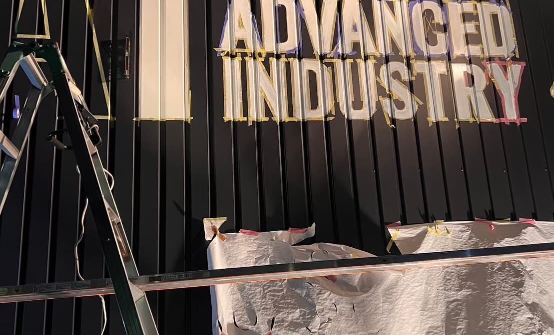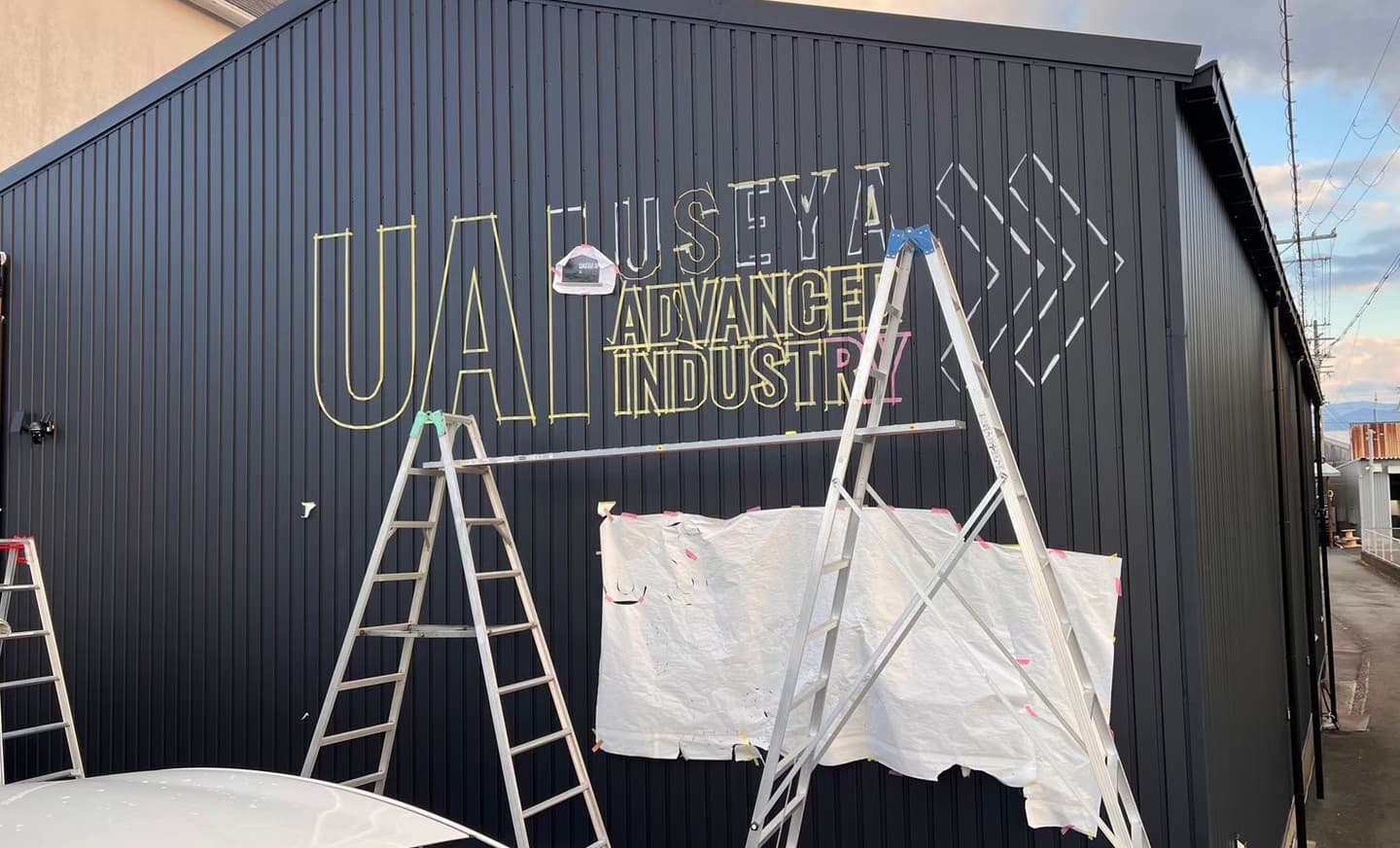 のっぺらだった壁に社名が浮き上がりましたね!