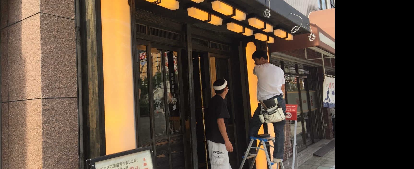店舗内作業の為、狭い空間で資材を避けながらの作業です。