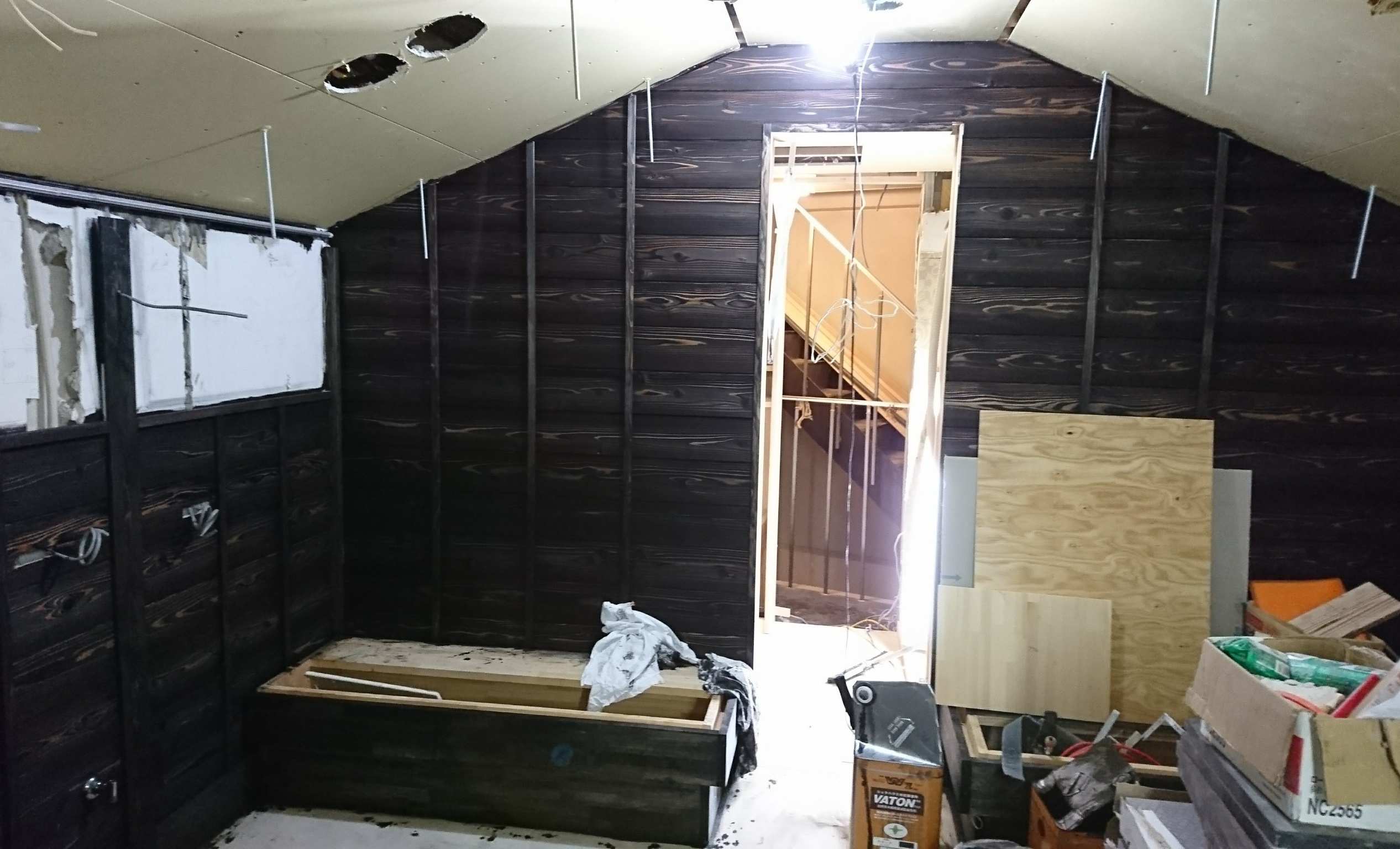 個人的には焼杉のふき取りの仕上がりが好きです。かっこいいでしょ。